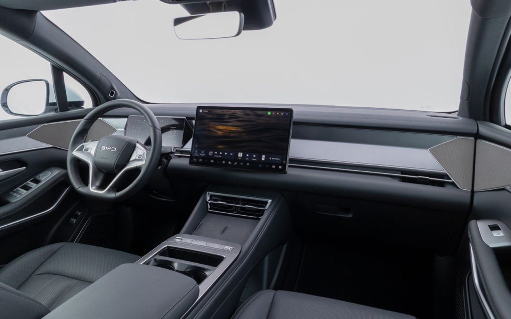 Com 5,04 metros de comprimento e entre-eixos de 2,95 m, o BYD Atto 8 oferece cabine para 7 ocupantes e porta-malas que varia de 270 a 1.960 litros, a depender da configuração de assentos. Entre os principais equipamentos, o modelo traz:
