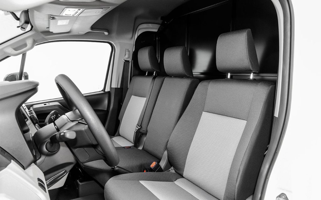 A estrutura da van foi projetada com zonas de absorção de impacto e reforços do tipo ring frame. O pacote de segurança inclui 3 airbags, controles de tração e estabilidade, assistente de partida em rampa, câmera de ré e sensores de estacionamento dianteiros e traseiros.