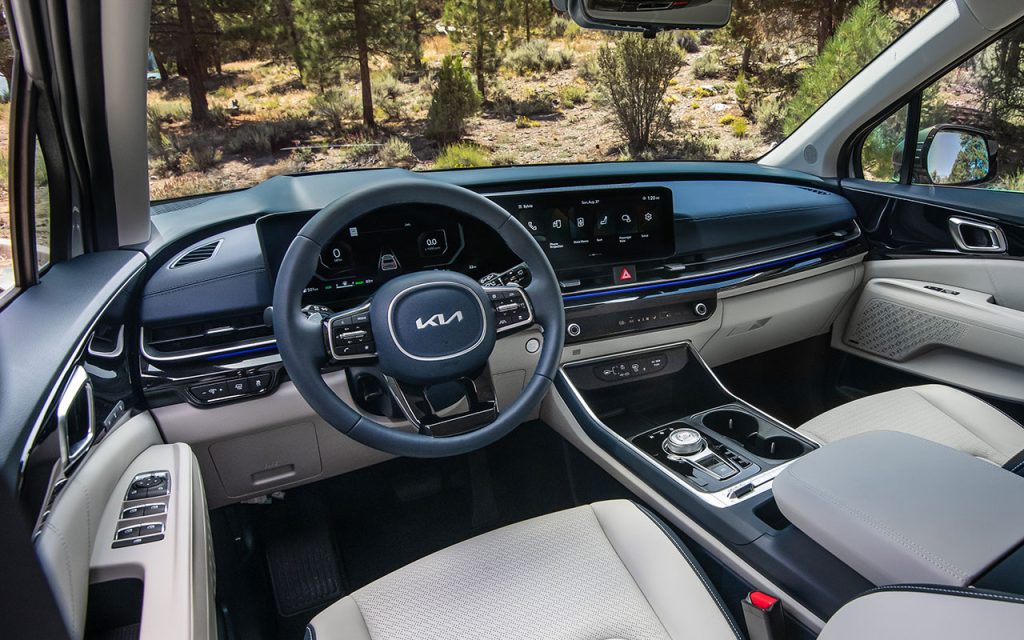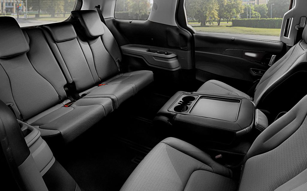 A Carnival híbrida conta ainda com 8 airbags e sistemas como alerta de tráfego cruzado traseiro e assistente de saída segura, que impede a abertura das portas caso haja veículos se aproximando.
