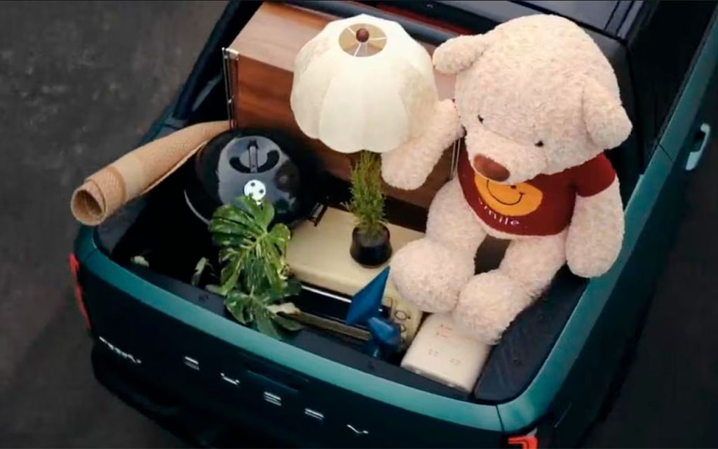Por fim, o modo “PUP” (referência à picape) amplia a funcionalidade para transporte de carga. O segmento traseiro do veículo conta com uma estrutura de separação removível que permite adaptar o compartimento para objetos maiores, facilitando o transporte de equipamentos, bagagens volumosas ou itens para atividades externas, como camping.
