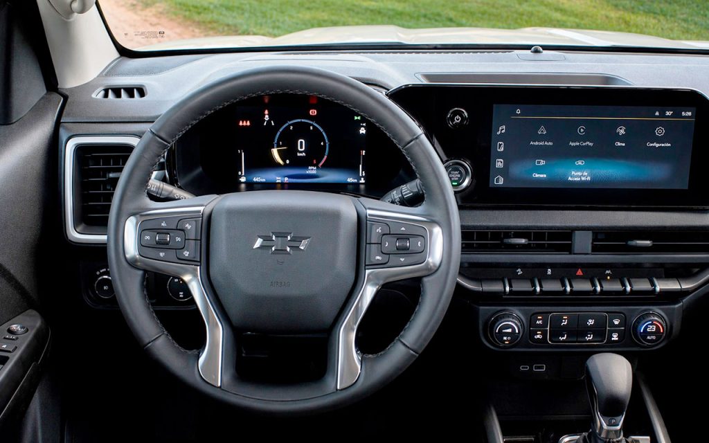 De acordo com a GM, o desenvolvimento da Trail Boss exigiu inclusive a recalibração dos sistemas avançados de assistência à condução em razão da nova geometria da carroceria. Entre os recursos presentes estão alerta de colisão frontal com frenagem automática de emergência e assistente de permanência em faixa.