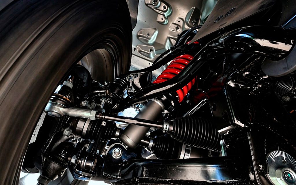 No conjunto mecânico, a suspensão dianteira foi elevada em 18 mm, enquanto a traseira ganhou 30 mm extras, melhorando os ângulos para transposição de obstáculos. O modelo também recebe extensor dianteiro com iluminação auxiliar em LED, ganchos de reboque, protetor inferior metálico, rodas em acabamento black piano e escapamento com ponteira preta.